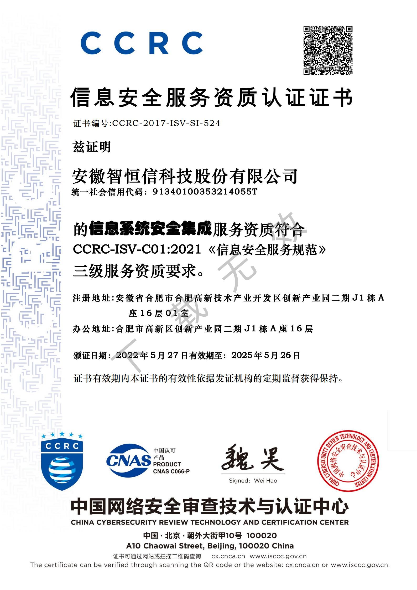 信息系统安全集成服务资质证书