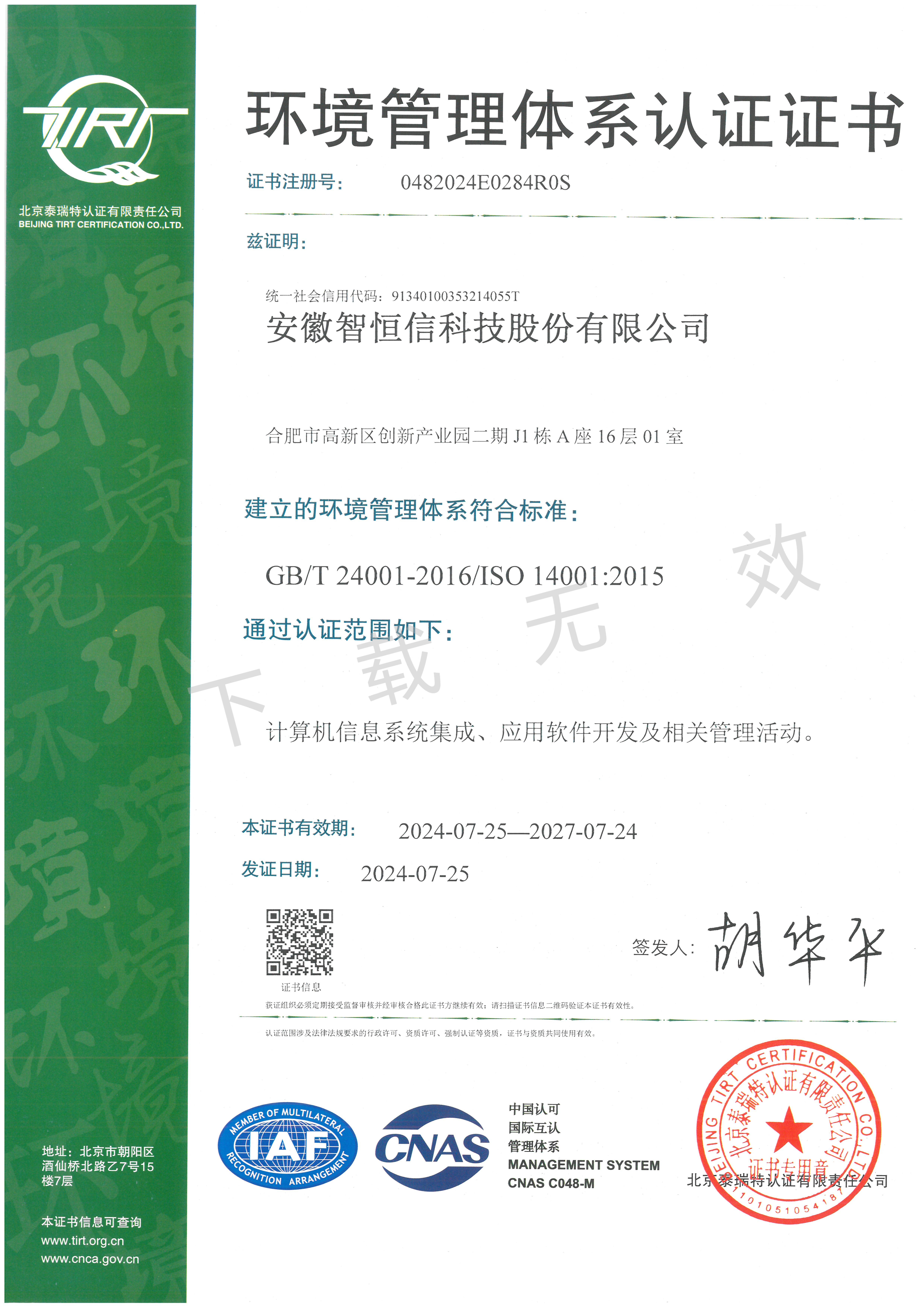 环境管理认证证书