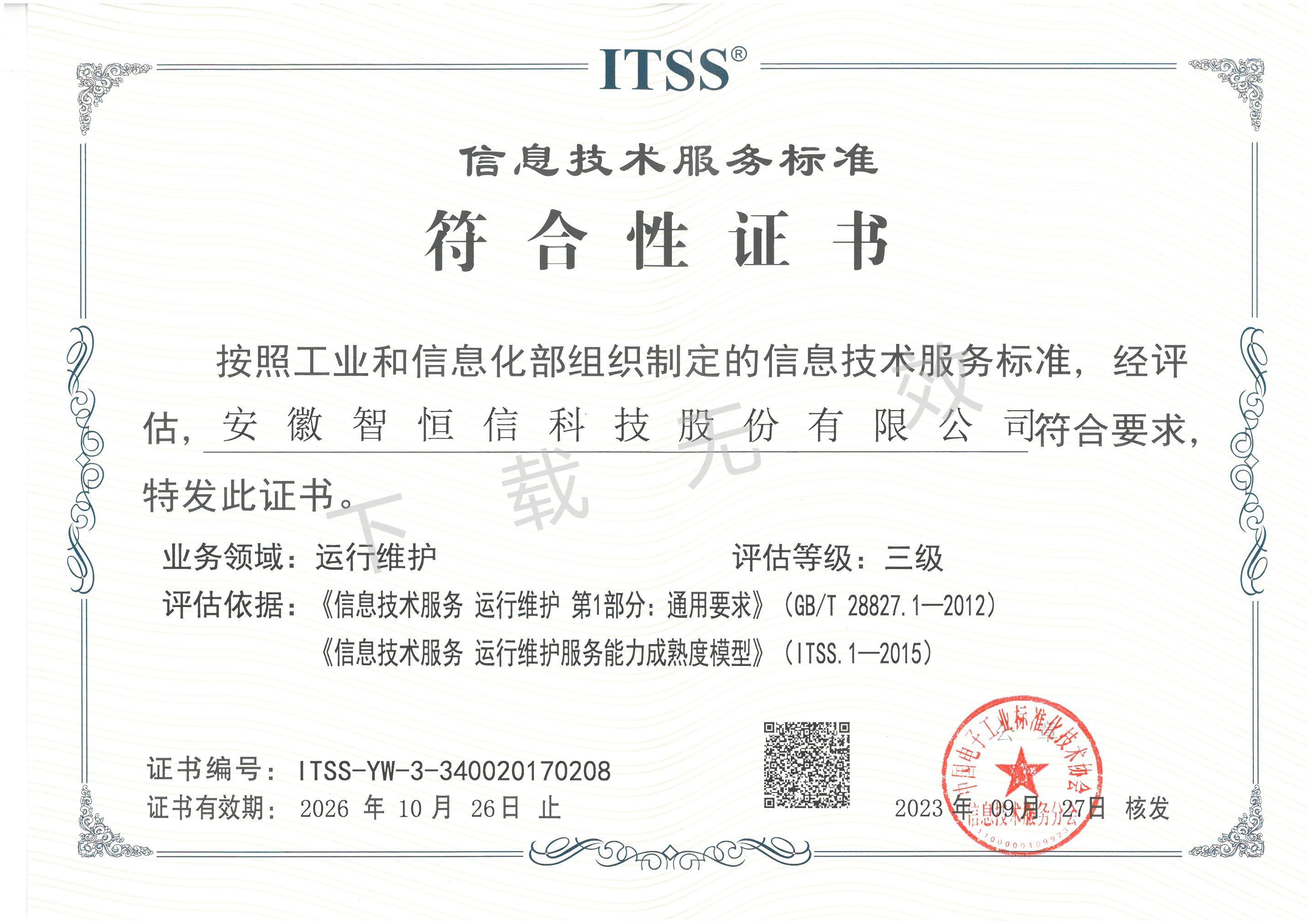 信息技术服务标准符合性成熟度三级证书